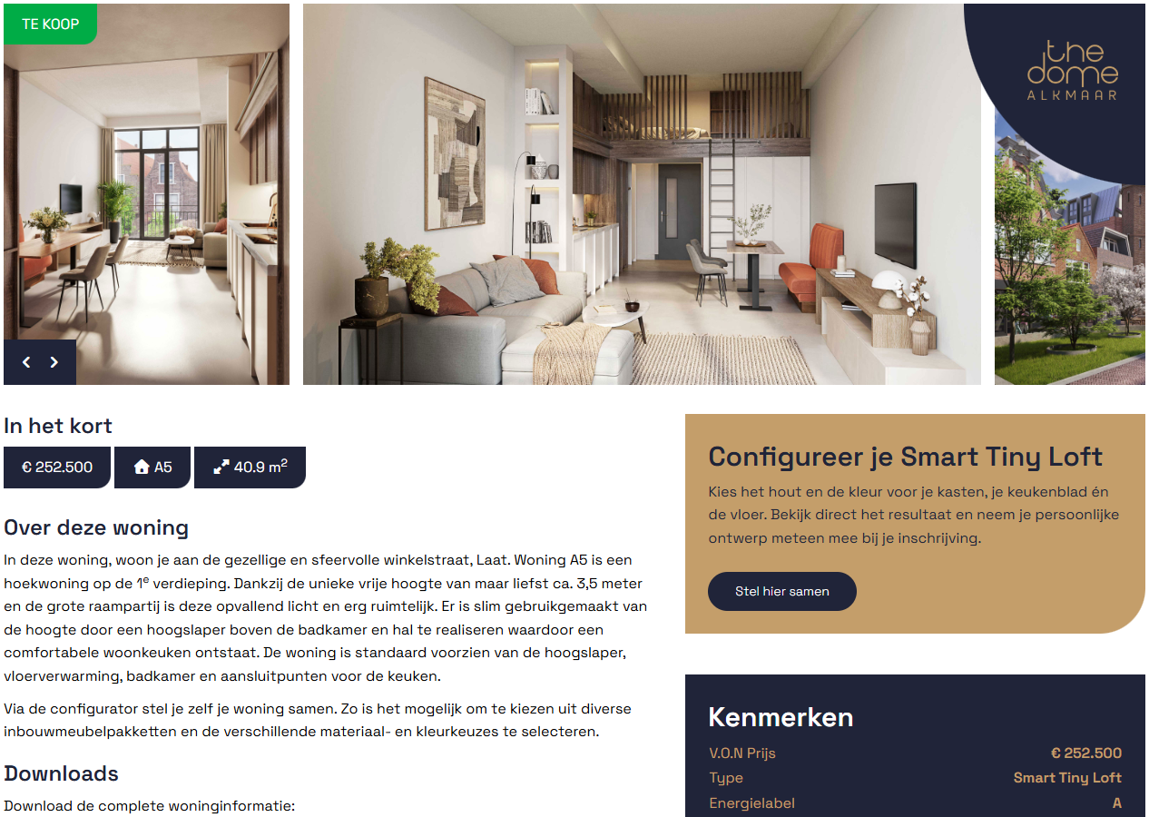 Voorbeeld van ons project in Alkmaar: https://aanbod.thedomealkmaar.nl/